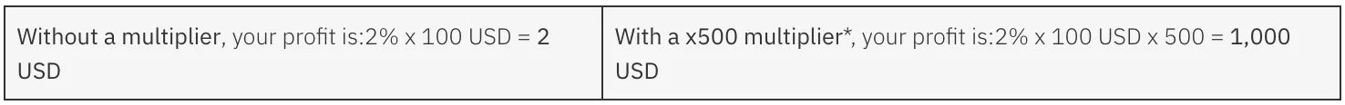 Multipliers allow you to amplify your potential profits in a similar way as leveraged trading. You simply apply a multiplier to your trades to potentially multiply your profit. But unlike leveraged trading, you won’t be increasing your potential losses at the same time.