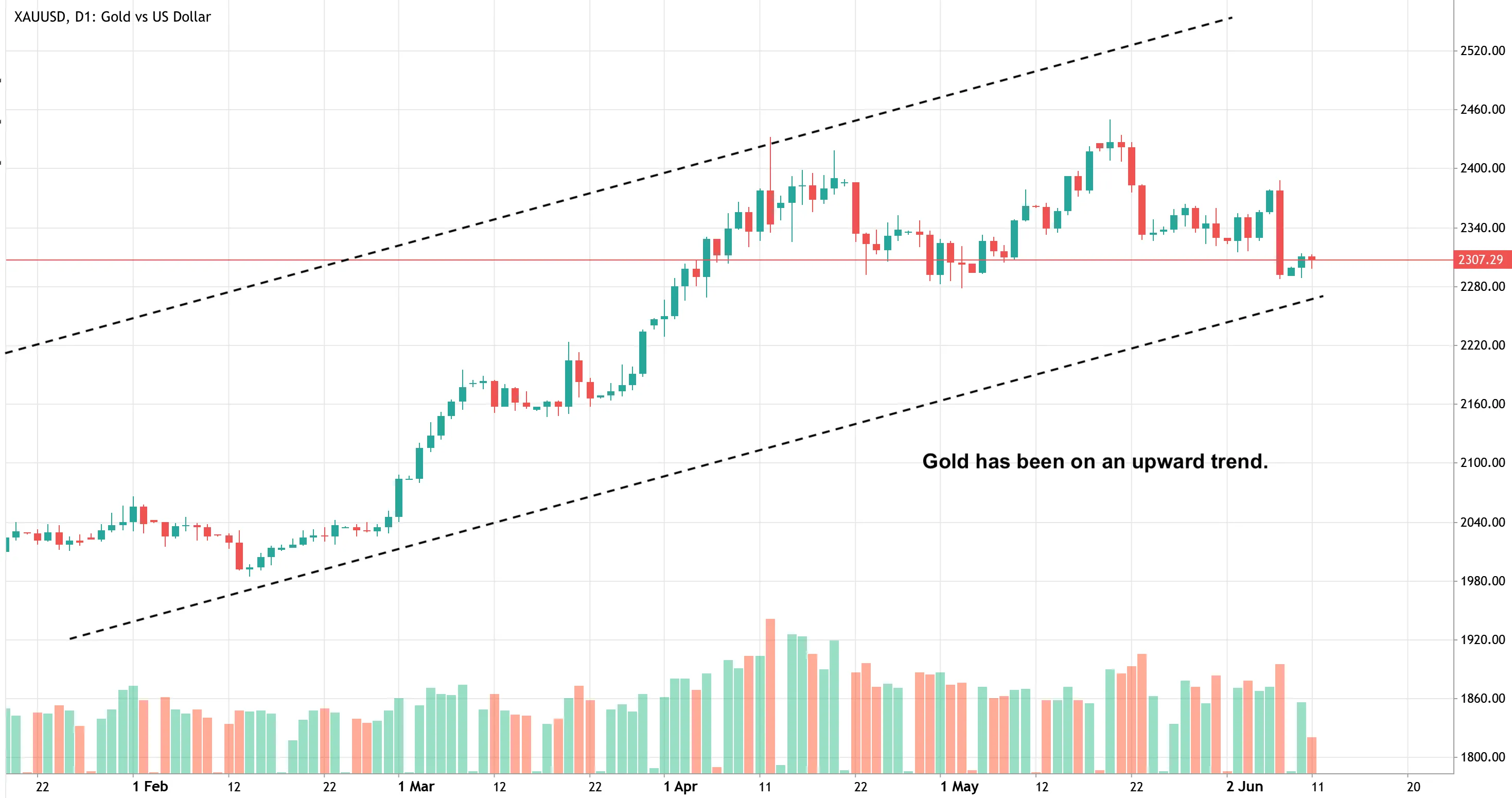 The chart below shows the price of gold (XAU/USD) daily, highlighting a significant upward trend that coincides with recent market developments and economic forecasts.