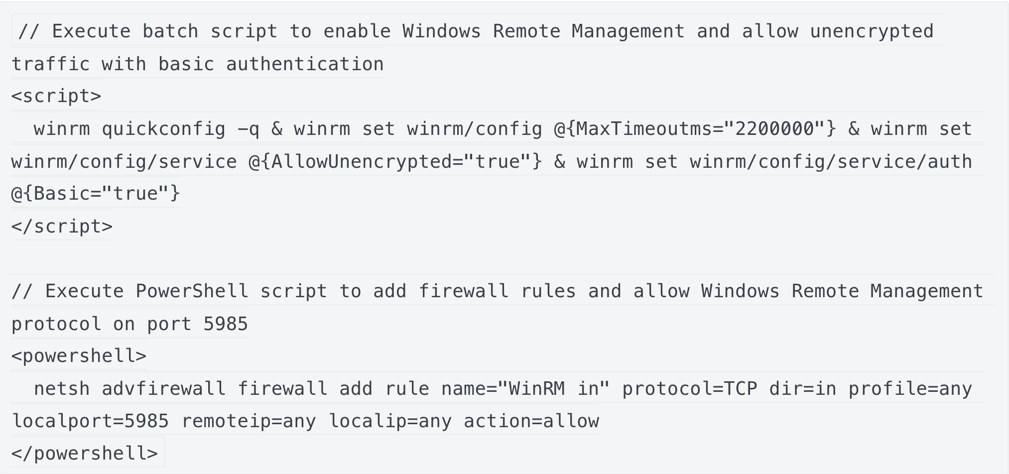 WinRM bash & PowerShell snippet