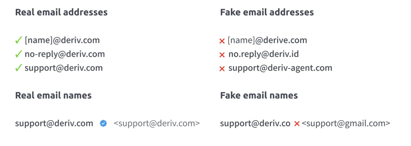 - Yuboruvchining elektron pochta manzili @deriv .com bilan tugamaydi.